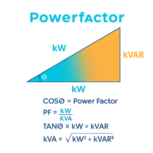 De powerfactor (Pf) drukt de verhouding uit tussen het werkelijk vermogen en het schijnbaar vermogen. Hiermee wordt duidelijk in welke mate er sprake is van onnodig stroomverbruik. Een ideale powerfactor is 1. Wanneer de waarde bijvoorbeeld 0,9 bedraagt, betekent dit dat er 10% extra stroom nodig is om hetzelfde nuttige vermogen te leveren.